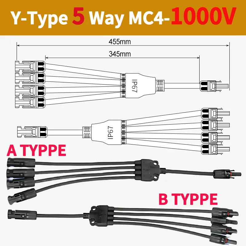 1/5/20/100 Sets DC PV Y Branch Photovoltaic Solar Connector 1000V 30A Male Female 3-Way 4-Way 5-Way Plug 1 To 2/3/4 Adapter