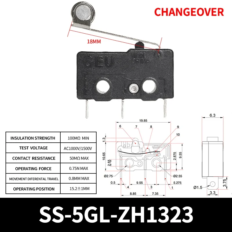 10/50/100PCS Micro Limit Switch with SPDT Snap Action – Safe, Eco-Friendly for Home Appliance On/Off Control