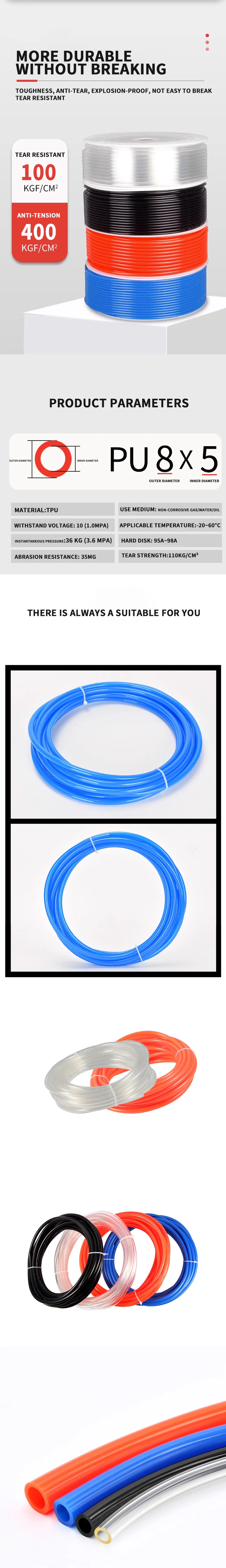 Be the first to review “10M/20M/50M/100M Air Component Hose Polyurethane Tubing 4mm 6mm 8mm 10mm 12mm Pipe Line Hose Pneumatic Tube for Compressor” Cancel reply