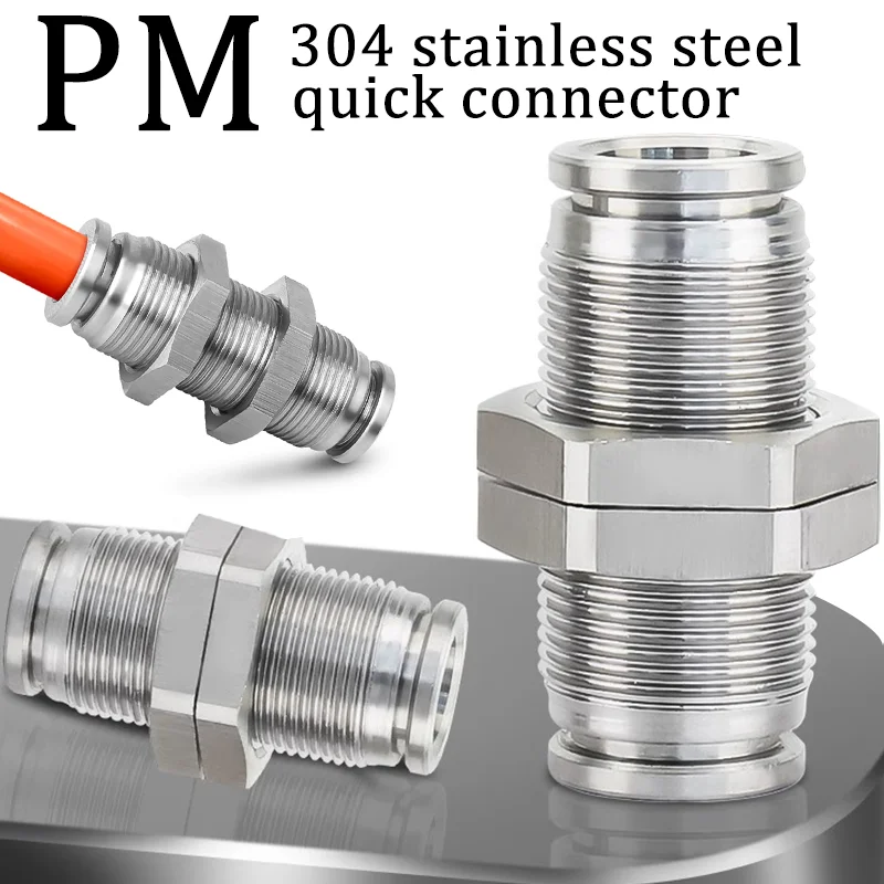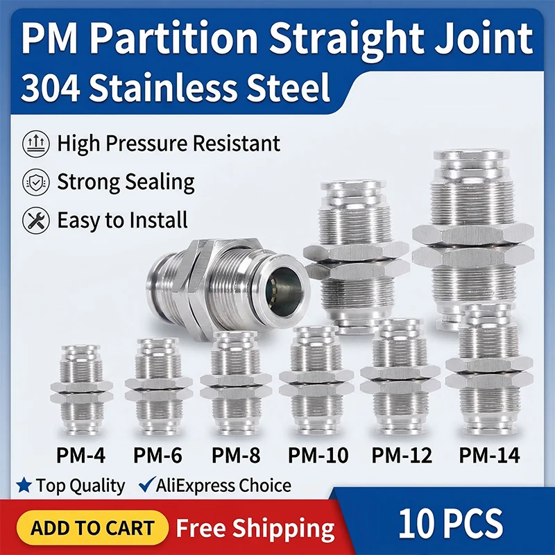 10PCS PM 304 Stainless Steel Fitting Metal Pneumatic Quick Coupling -4/6/8/10/12/14/16mm Push In air Hose Connector