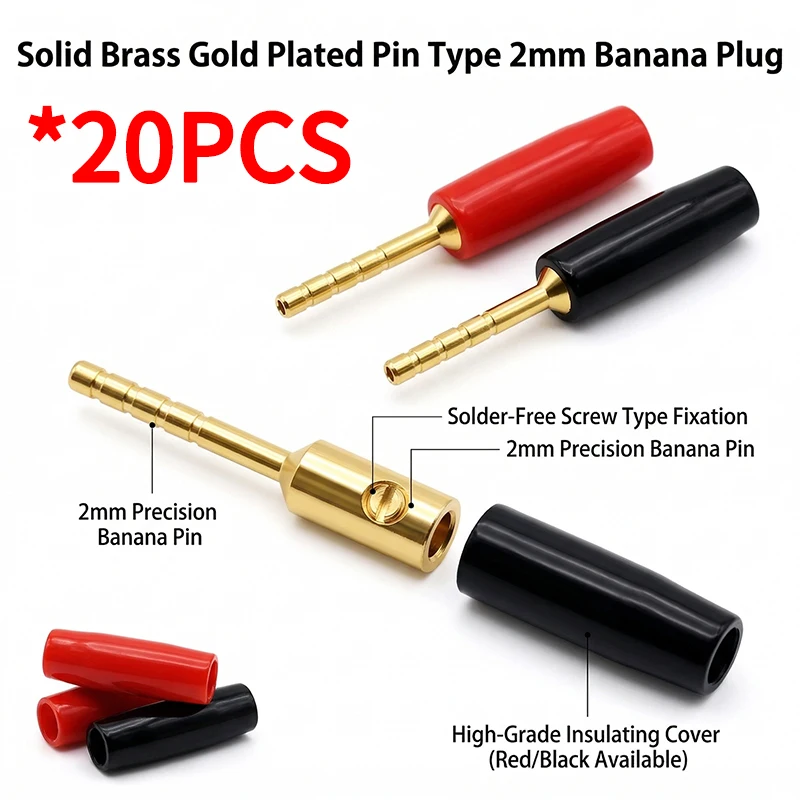 20PCS 2mm Gold Plated Screw Type Small Banana Plug Pin Audio Speaker Cable Connector Copper Straight Male Connector
