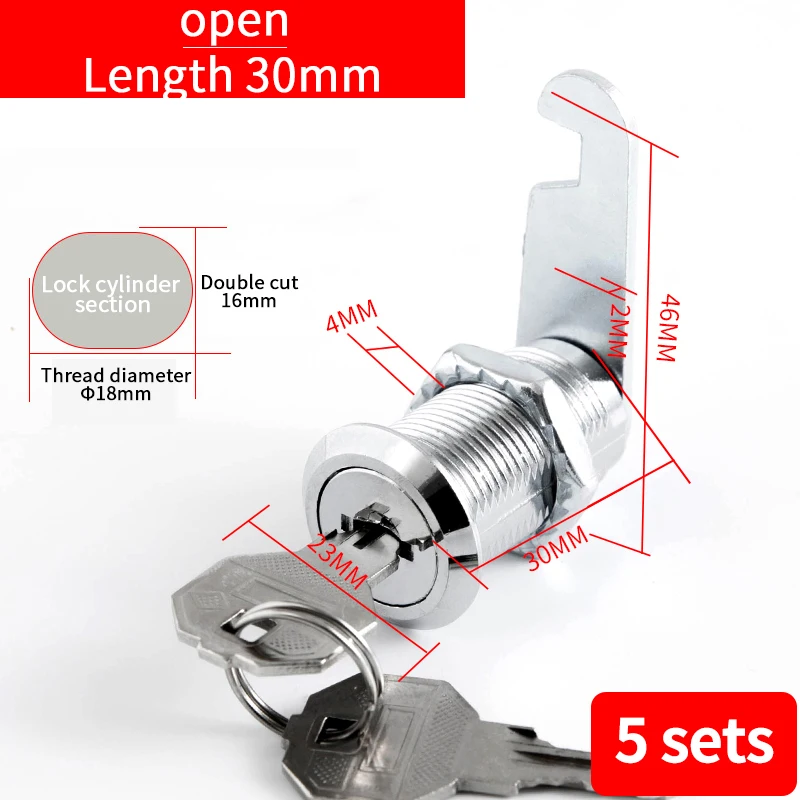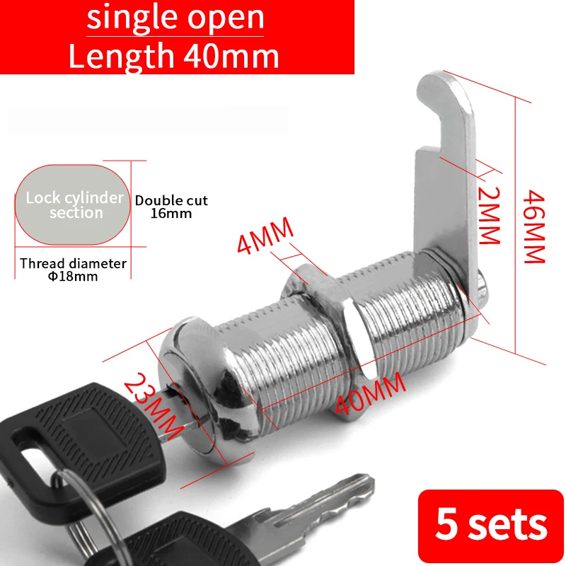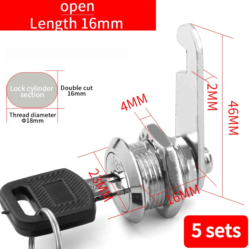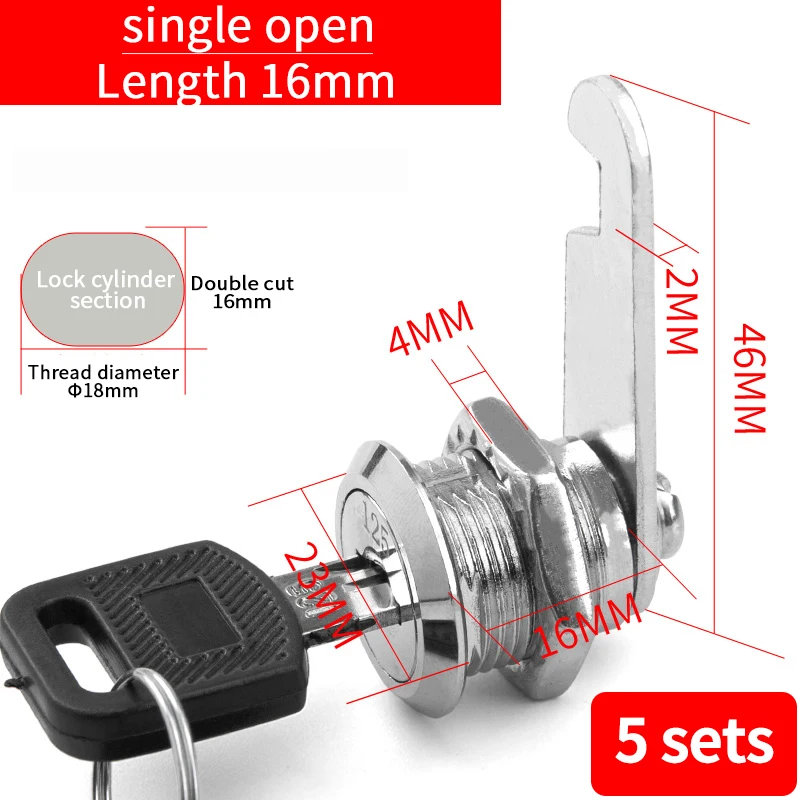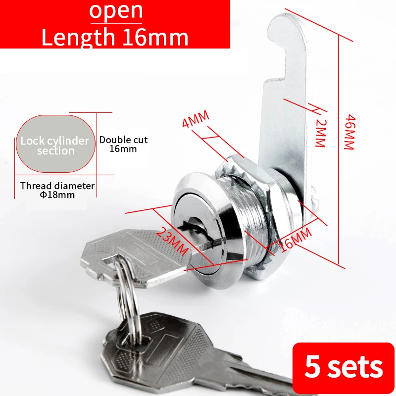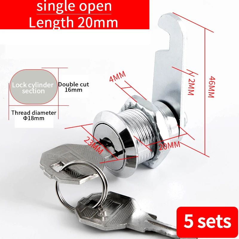 20SETS Metal Cylinder Cabinet Security Locker Cam Lock With 2 Keys Same Key Different Key Security Mailbox Lock Drawer 16mm