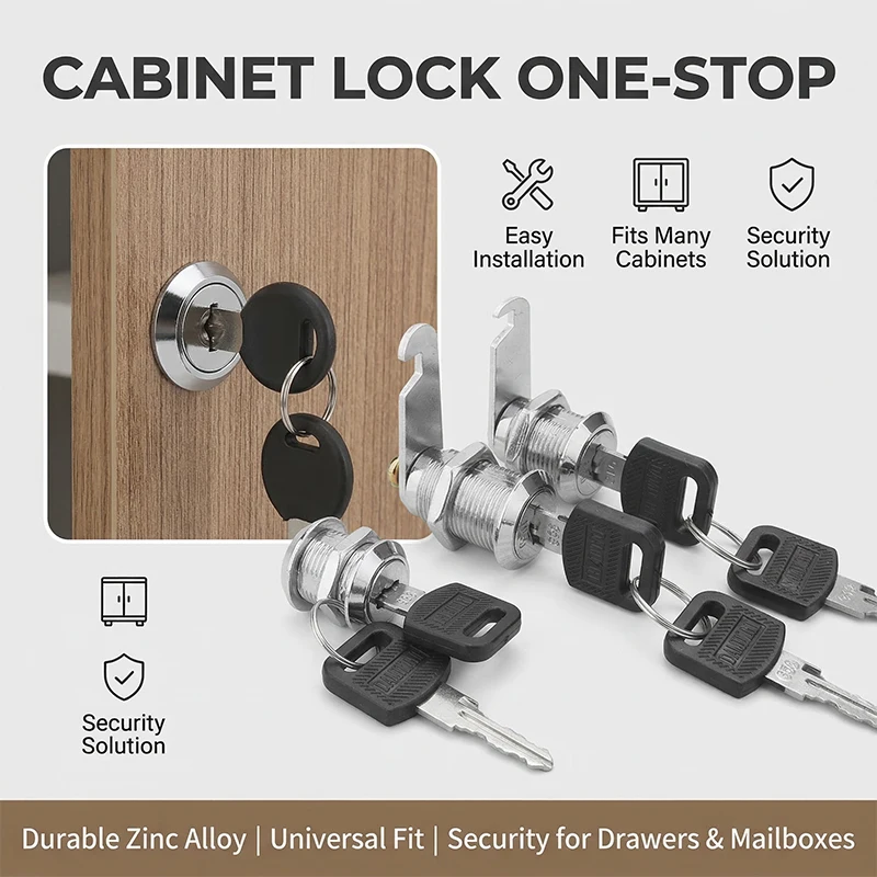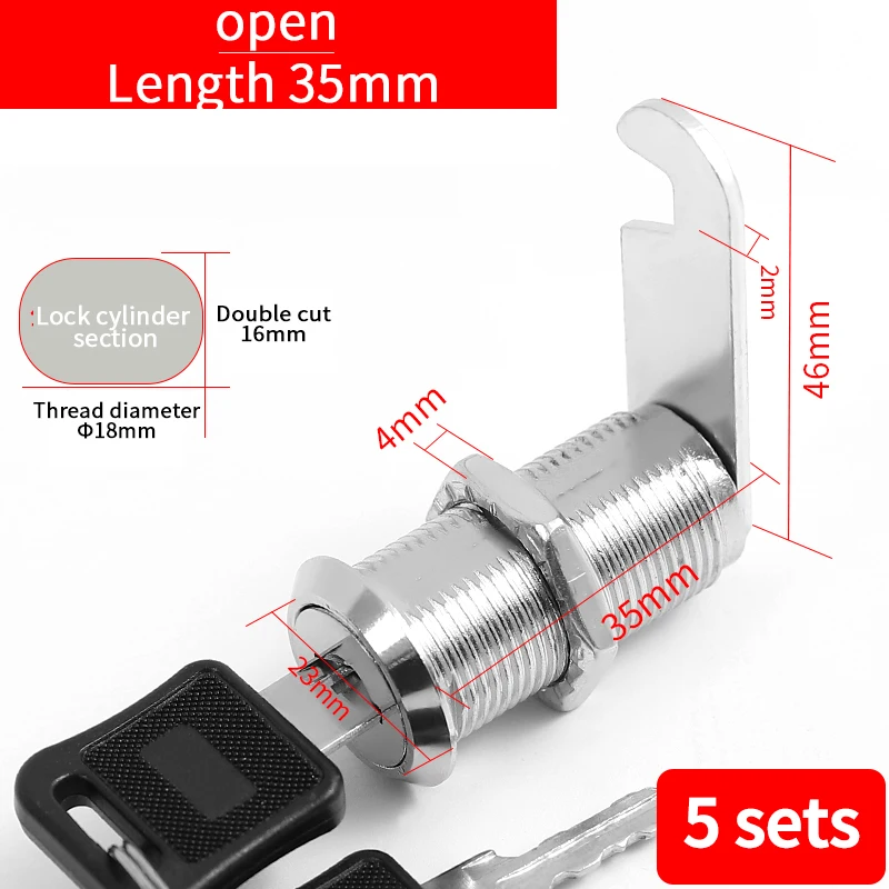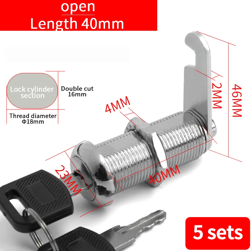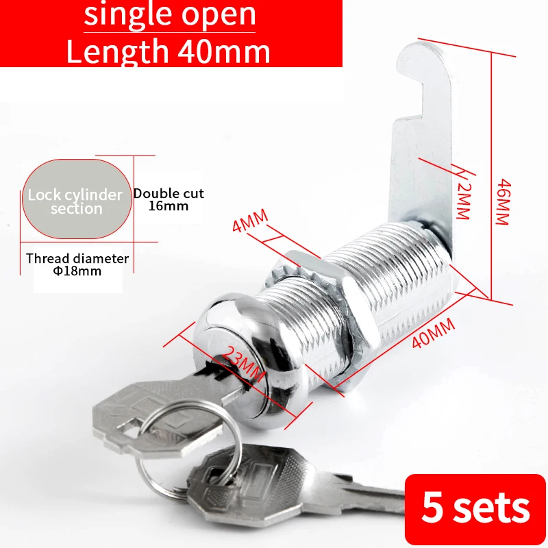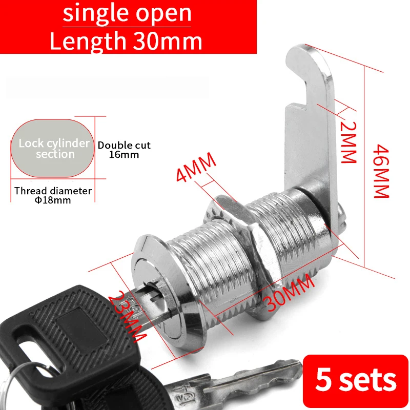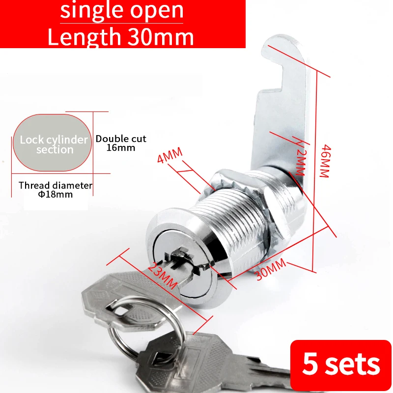 20SETS Metal Cylinder Cabinet Security Locker Cam Lock With 2 Keys Same Key Different Key Security Mailbox Lock Drawer 16mm