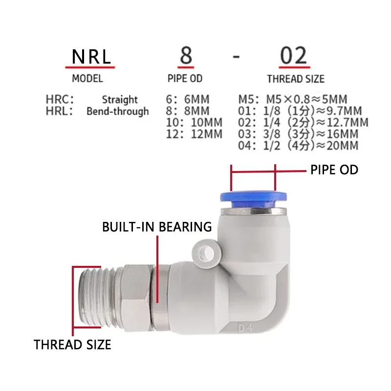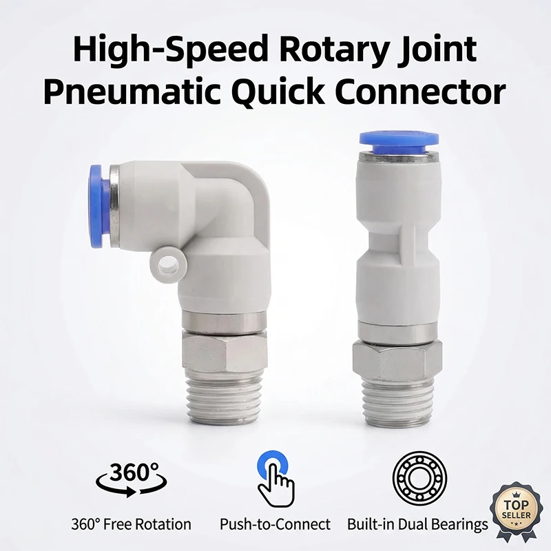 360° Rotary Connectors Pneumatic Air Fitting Swivel Joint High Speed Rotation 6/8/10/12mm MaleThread M5 1/4 1/2 Quick Coupling