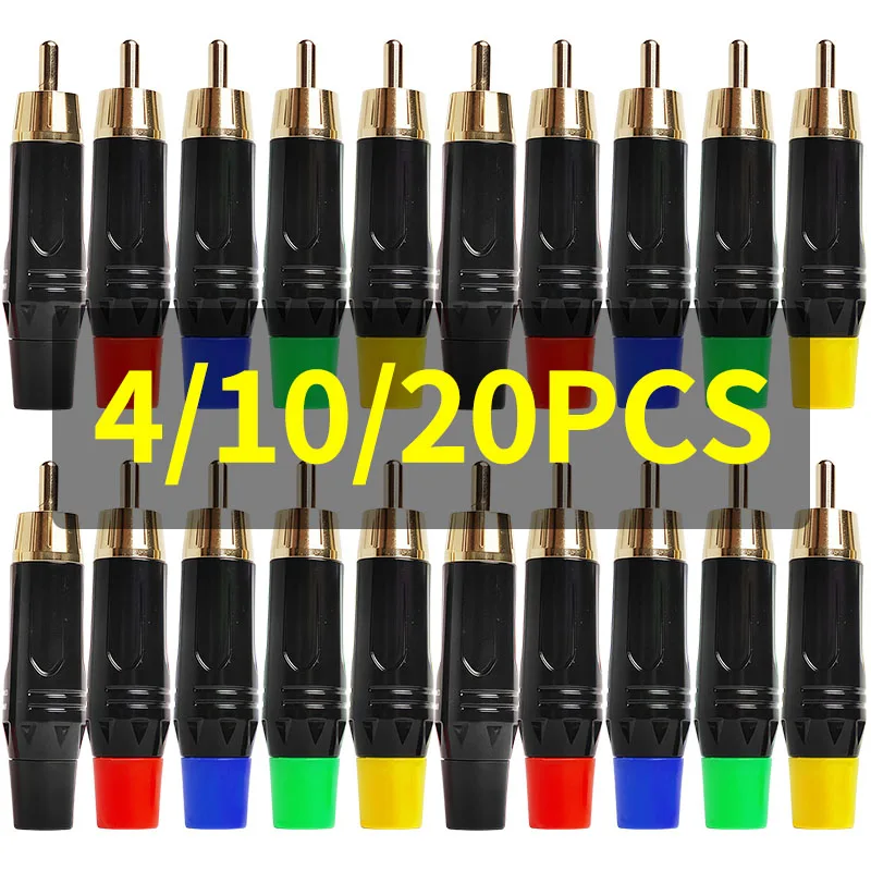 4/10/20pcs Gold RCA Phono Plugs – Coaxial AV Audio Video Solder Connector for Speaker PC