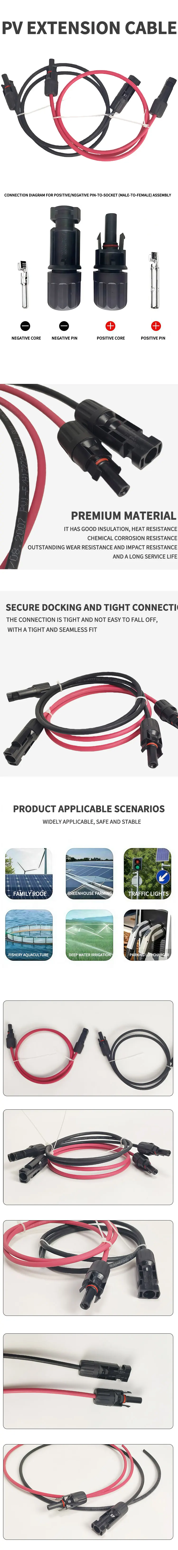 4//2.5 mm² Extension Cable PV1-F Solar Panel Wire, Waterproof DC Connector Male & Female Pair for Photovoltaic System