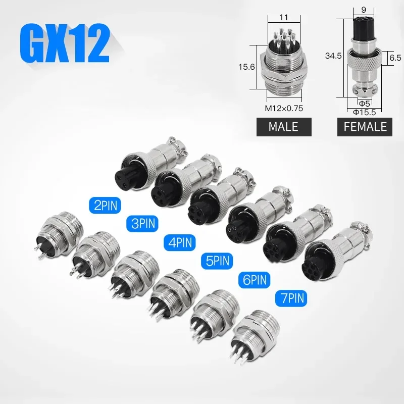 5/10/20Set GX12 2 3 4 5 6 7 8 9 10 12 14 15 Pin M12 Male&Female Docking Aviator Aviation Plug Socket Circular 12MM Connector
