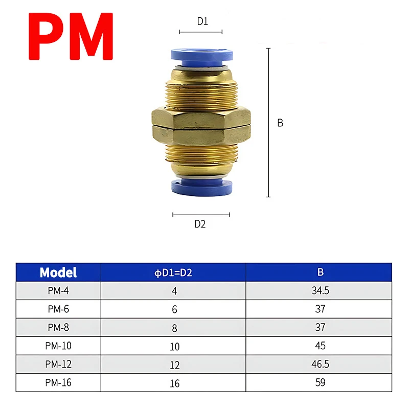 5PCS 4mm 6mm 8mm 10mm 12mm OD Tube PM Straight Pneumatic Air Fittings bulkhead union Push To Connect Quick Release Connector