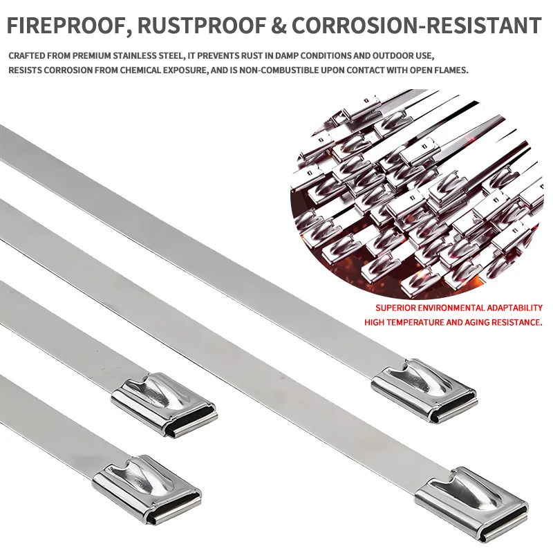 7.9mm 304 Stainless Steel Cable Ties, Heavy Duty Self-Locking Metal Zip Ties for Outdoor Cable Tray Wiring
