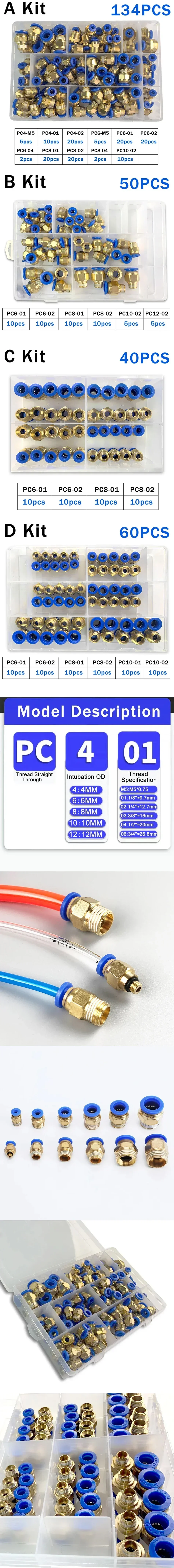 Boxed PC Series 4mm 6mm 8mm 10mm 12mm Air Joint Connectors Hose Tube Pneumatic Fittings 1/4 1/8 Push in Quick Release Couplings