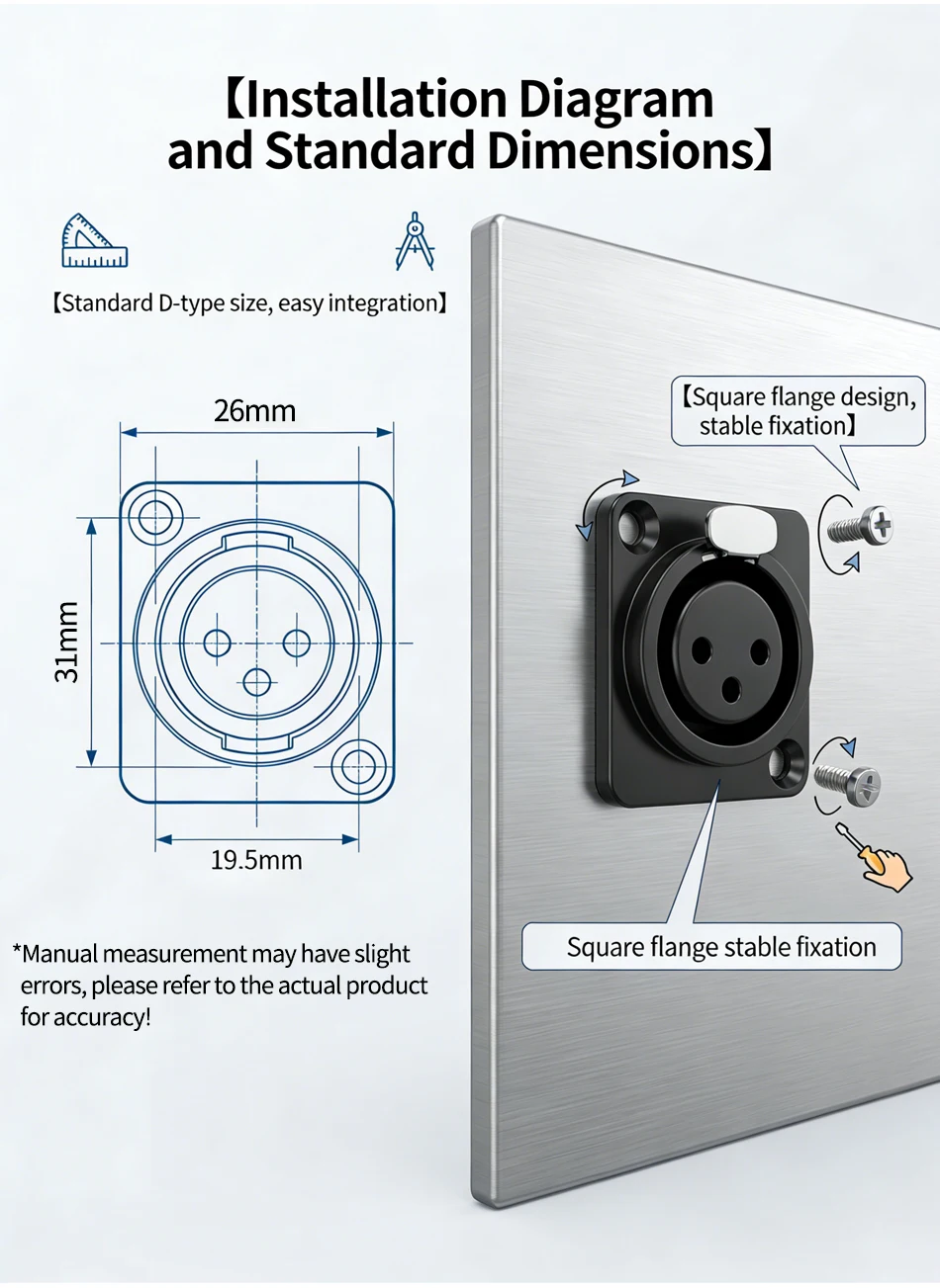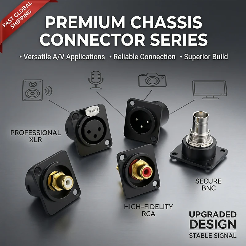 D-Type Panel Mount Connectors Kit – XLR, RCA, BNC Audio & Signal Jacks for Pro Audio, Broadcast & Industrial Equipment