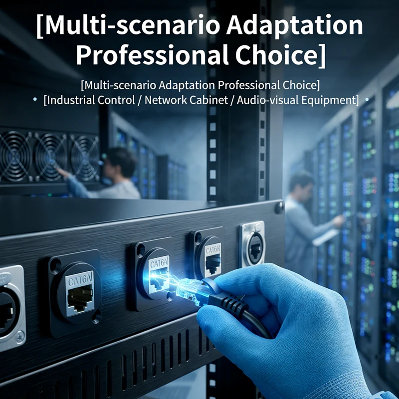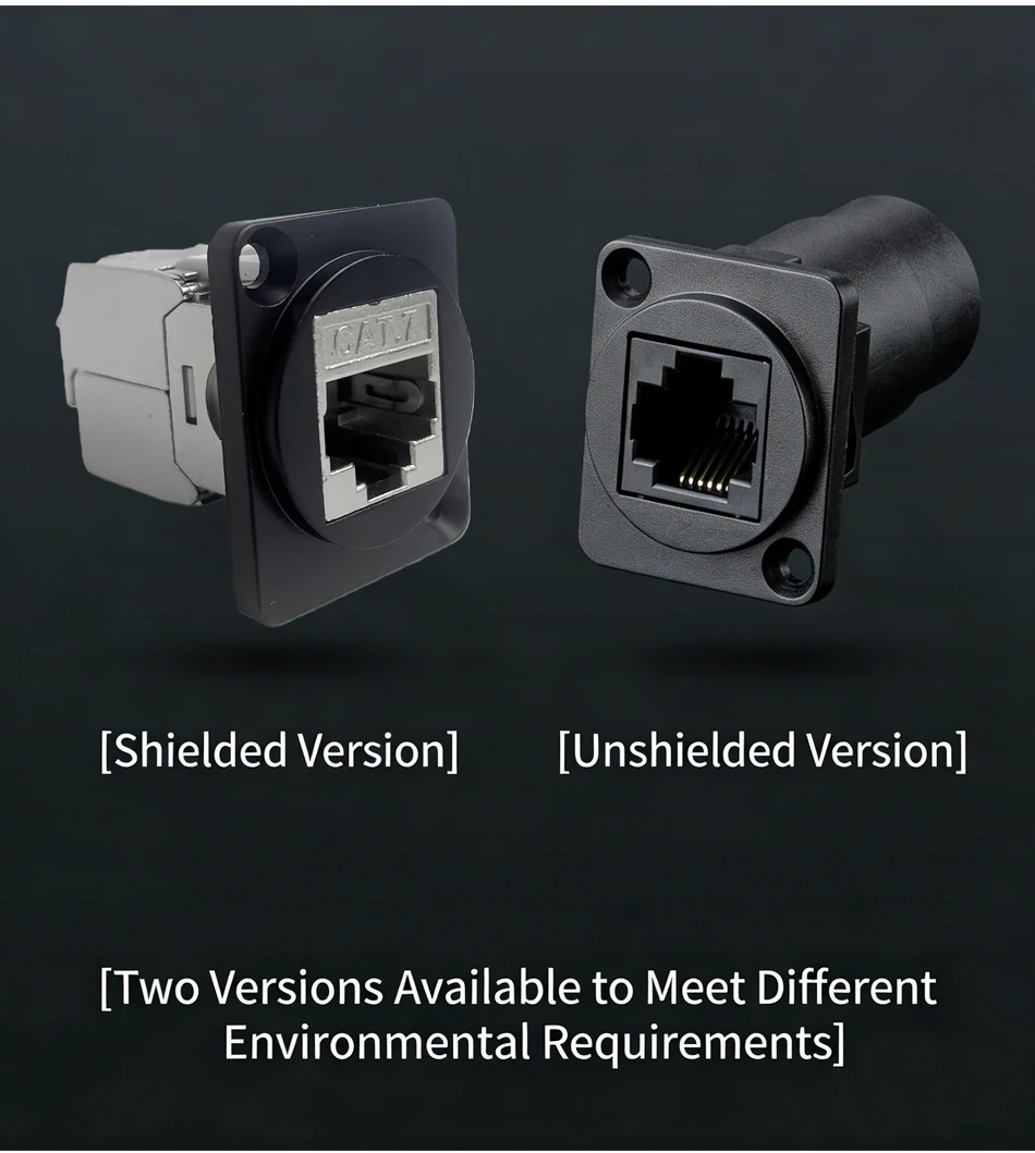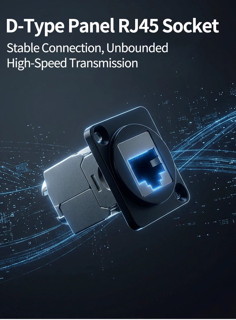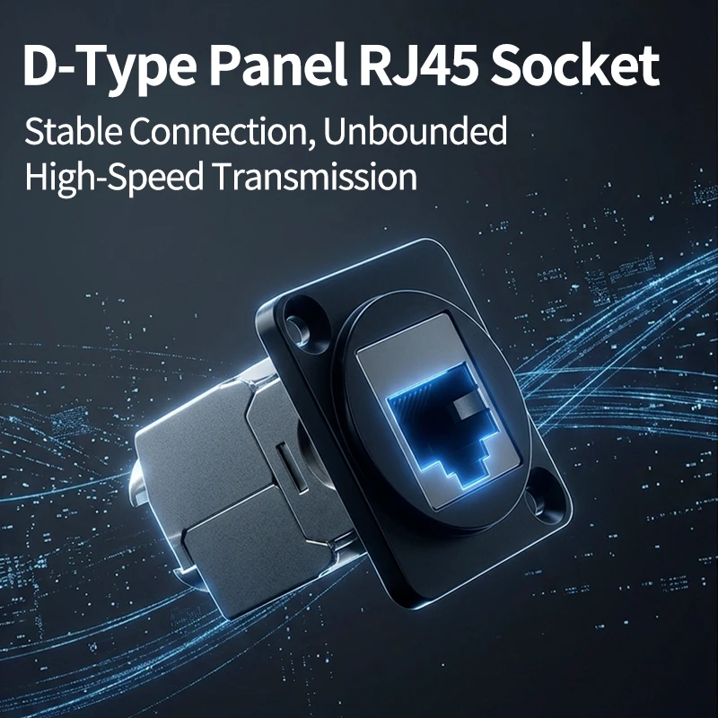 D-Type Panel Mount RJ45 Socket – CAT5e / CAT6 Ethernet Network Connector for Industrial Enclosure, Server Rack & Wall Box Wiring