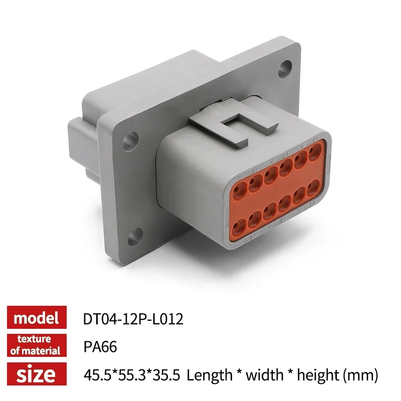 Deutsch DT Series IP68 Waterproof Connector with Fixed Flange Plug DT04-2P/12P for Auto/Truck/Bus Wiring 22-16AWG