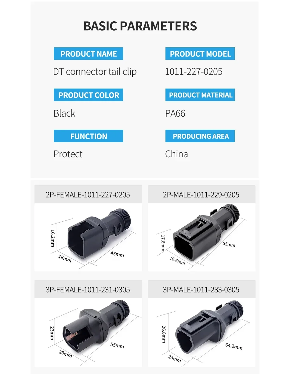 DT connector tail clip connectors 1011-227-0205 2-12P male female fixed protective sheath corrugated pipe fixed clip harness