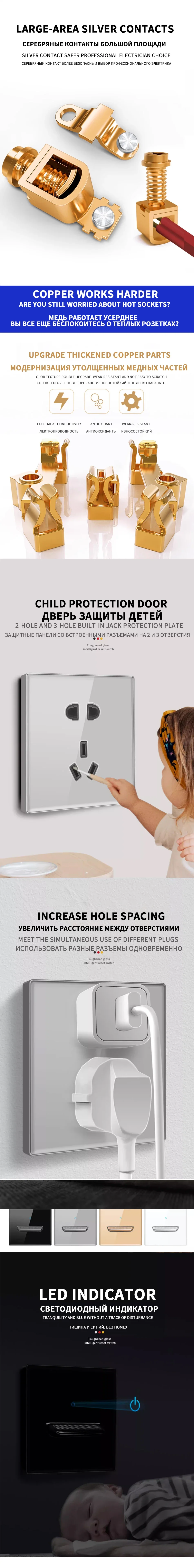 Model NumberTempered glass switch socket