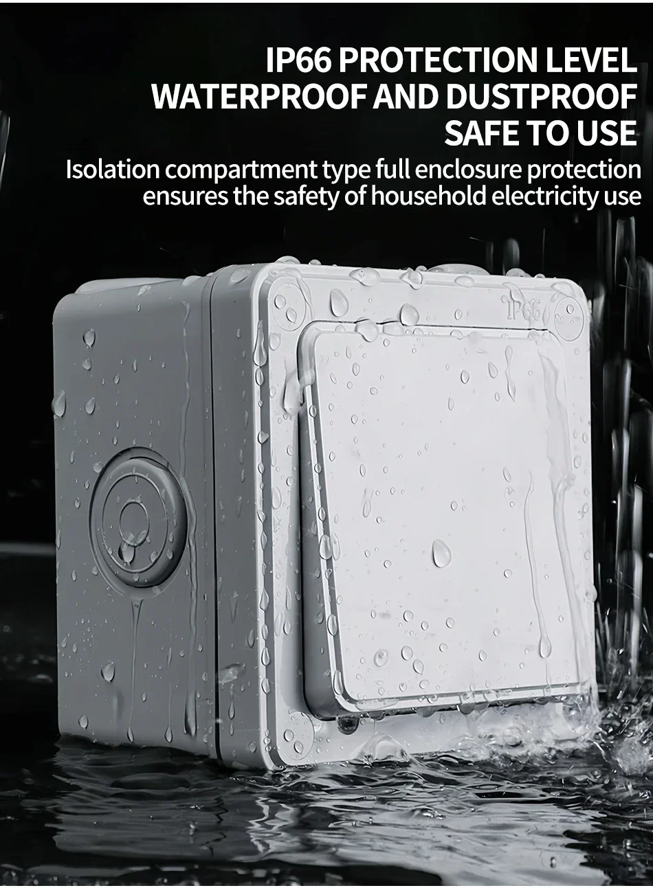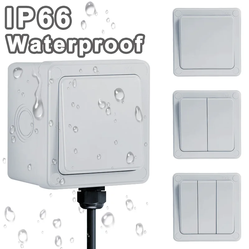 IP66 Outdoor Wall Switch 16A Weatherproof Push Button – 1/2/3 Gang Electrical for Garden/Patio/Exterior Use
