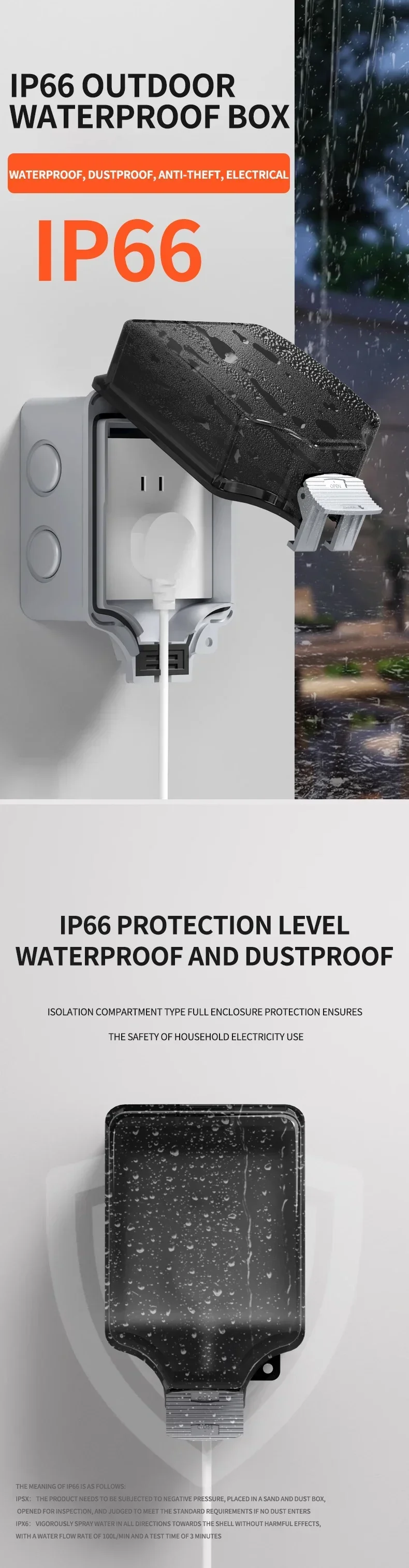 IP66 Waterproof ABS Power Distribution Box | Outdoor 86 Type Surface-Mounted Switch Panel with Rain Cover