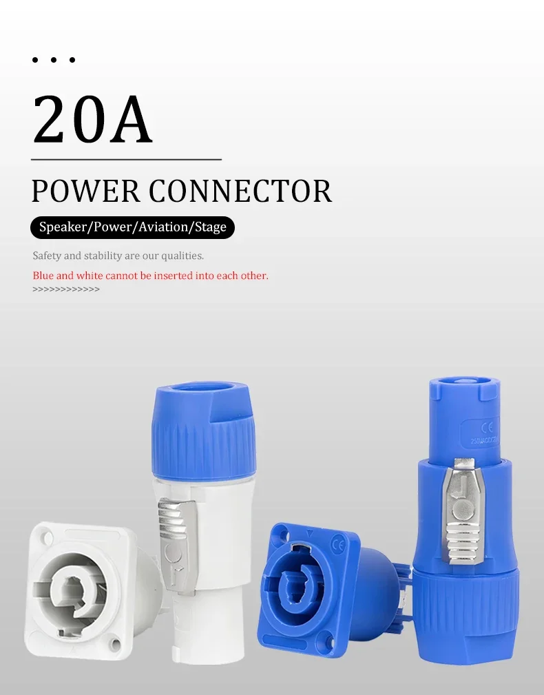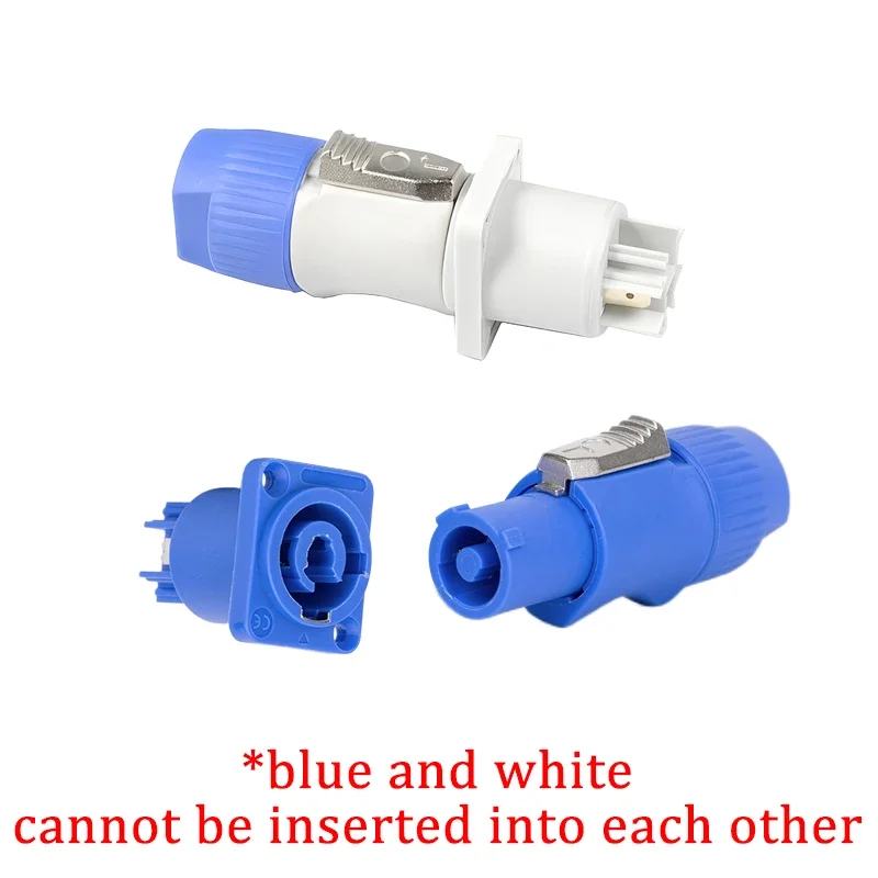 NAC3FCA NAC3FCB 3Pin Power Connector LED Speakon Male Plug Blue (Input)+White (Output) Plug+Female Socket 20A 250VAC