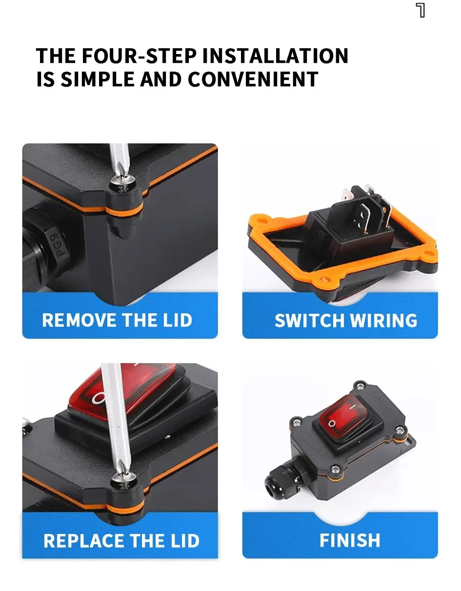 Outdoor On/Off Waterproof IP67 Junction Box Inline Power Cord 110V-220V 12V-24V Marine Rocker Switch 20A High Current Connetor