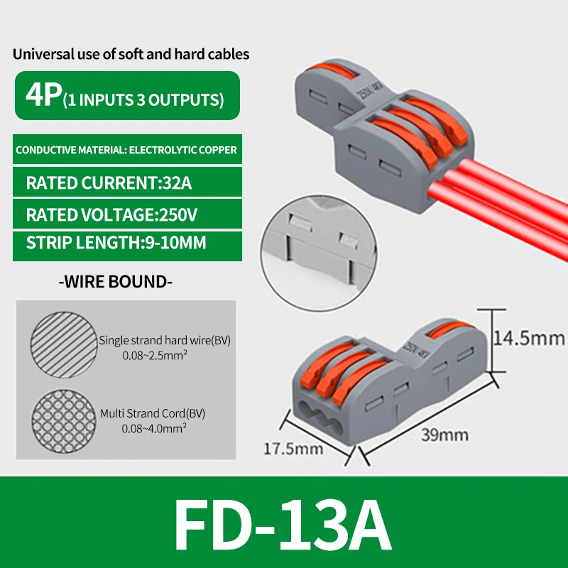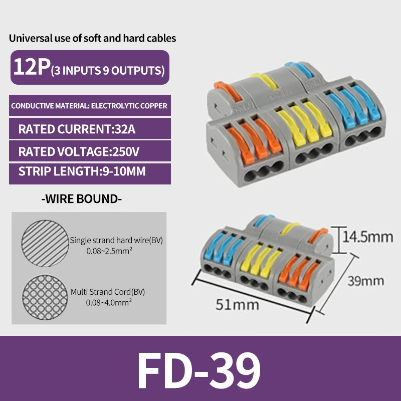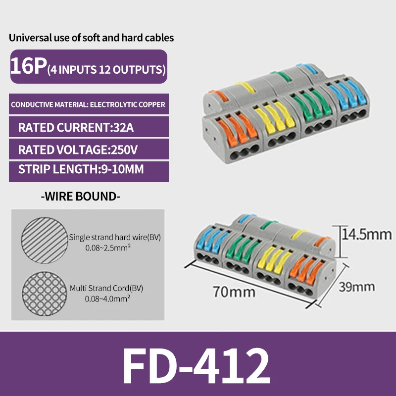 SPL-42/62/63/82/93 3/2-in 8/6/4-out Fast Wiring Terminal Multi-functional Parallel and Branch Docking Terminal Wire Connector