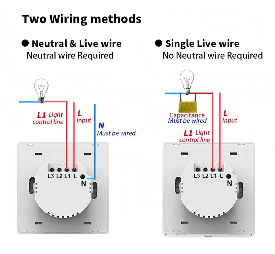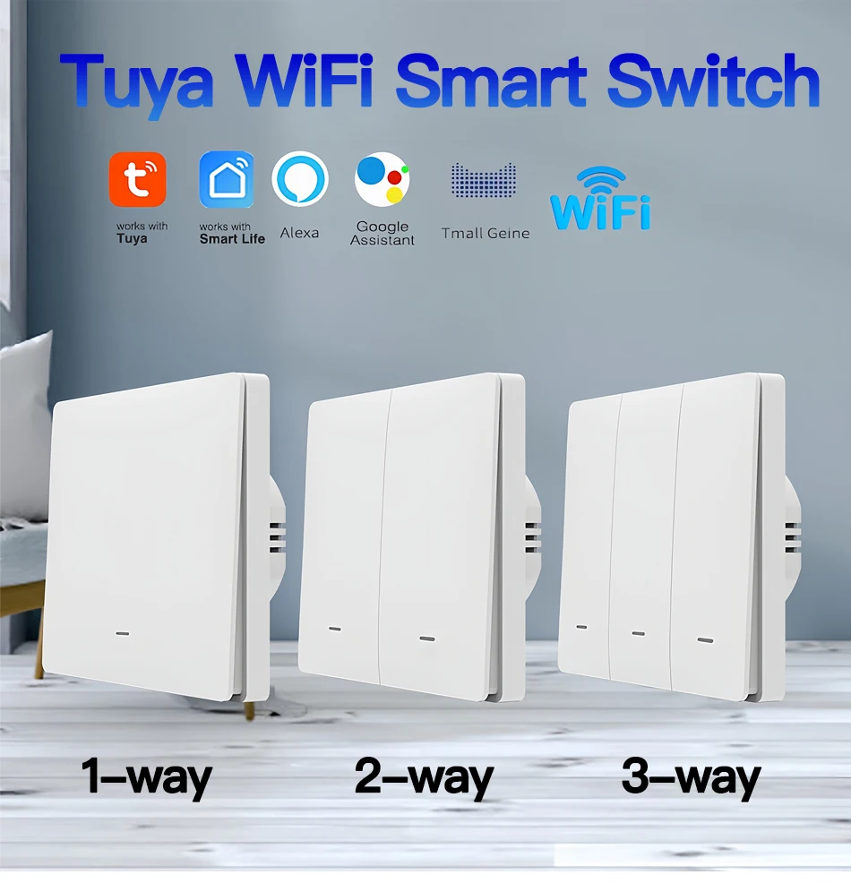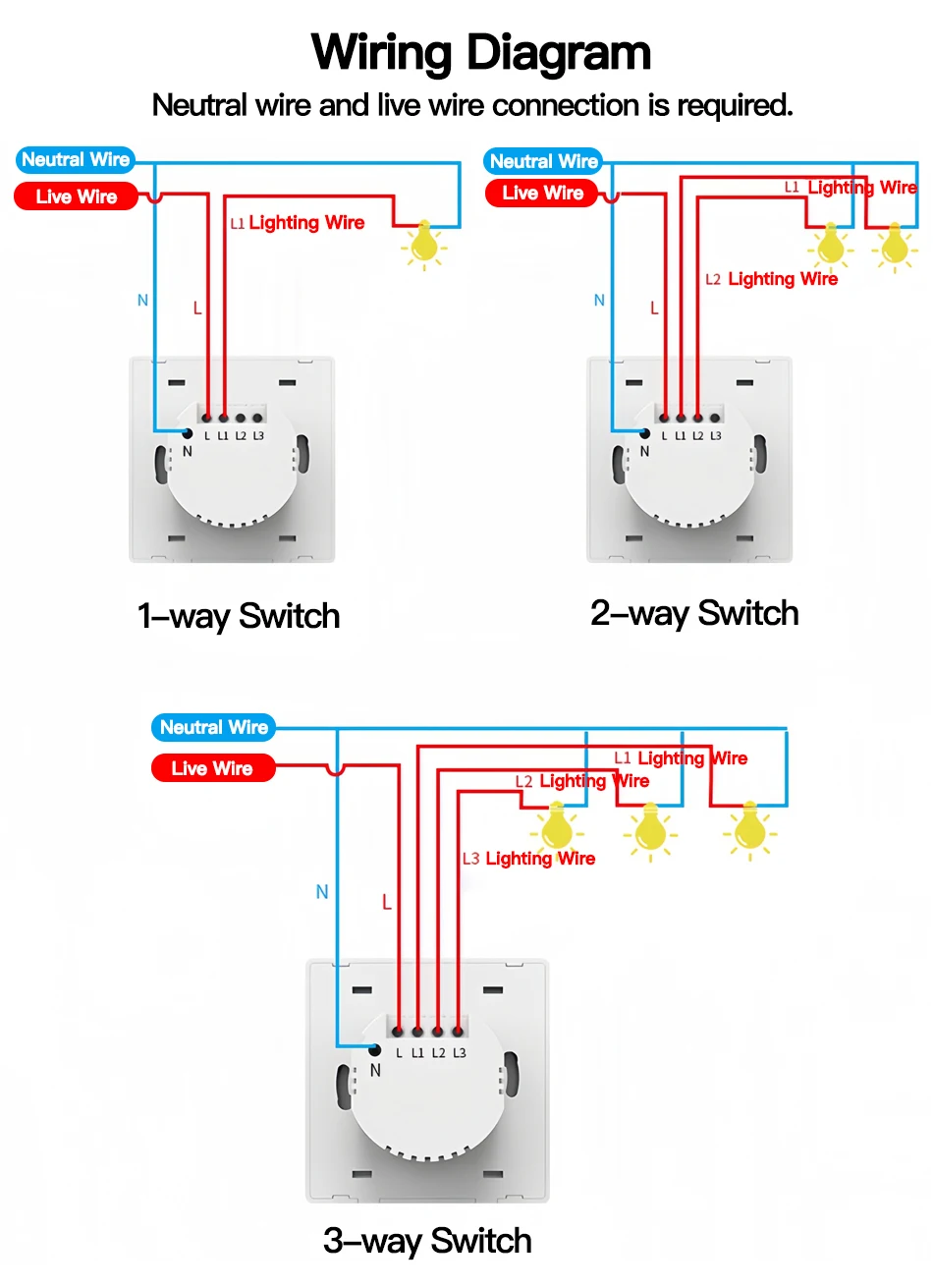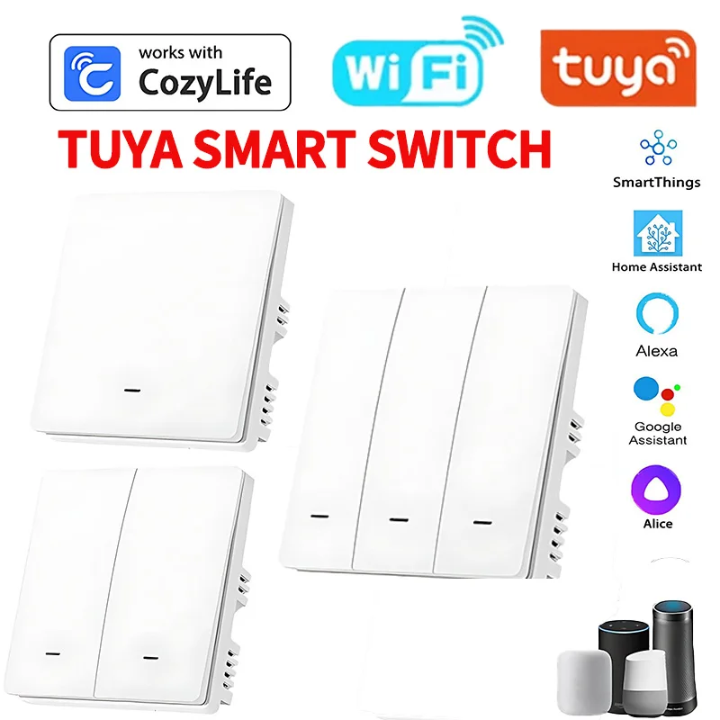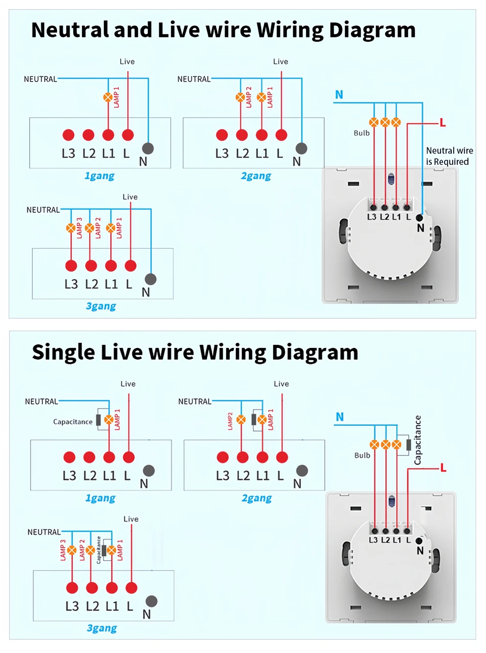 Tuya ZigBee Smart Light Switch No Neutral Wire No Capacitor Needed,1/2/3 Gang Wall Touch Interrupter Work with Alexa Google Home