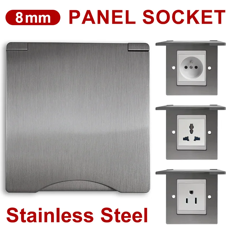 Universal/UK/FR/EU/US 8mm Single/Double Gang Power Outlet Stainless Steel Panel Switch Socket for Living Room Office