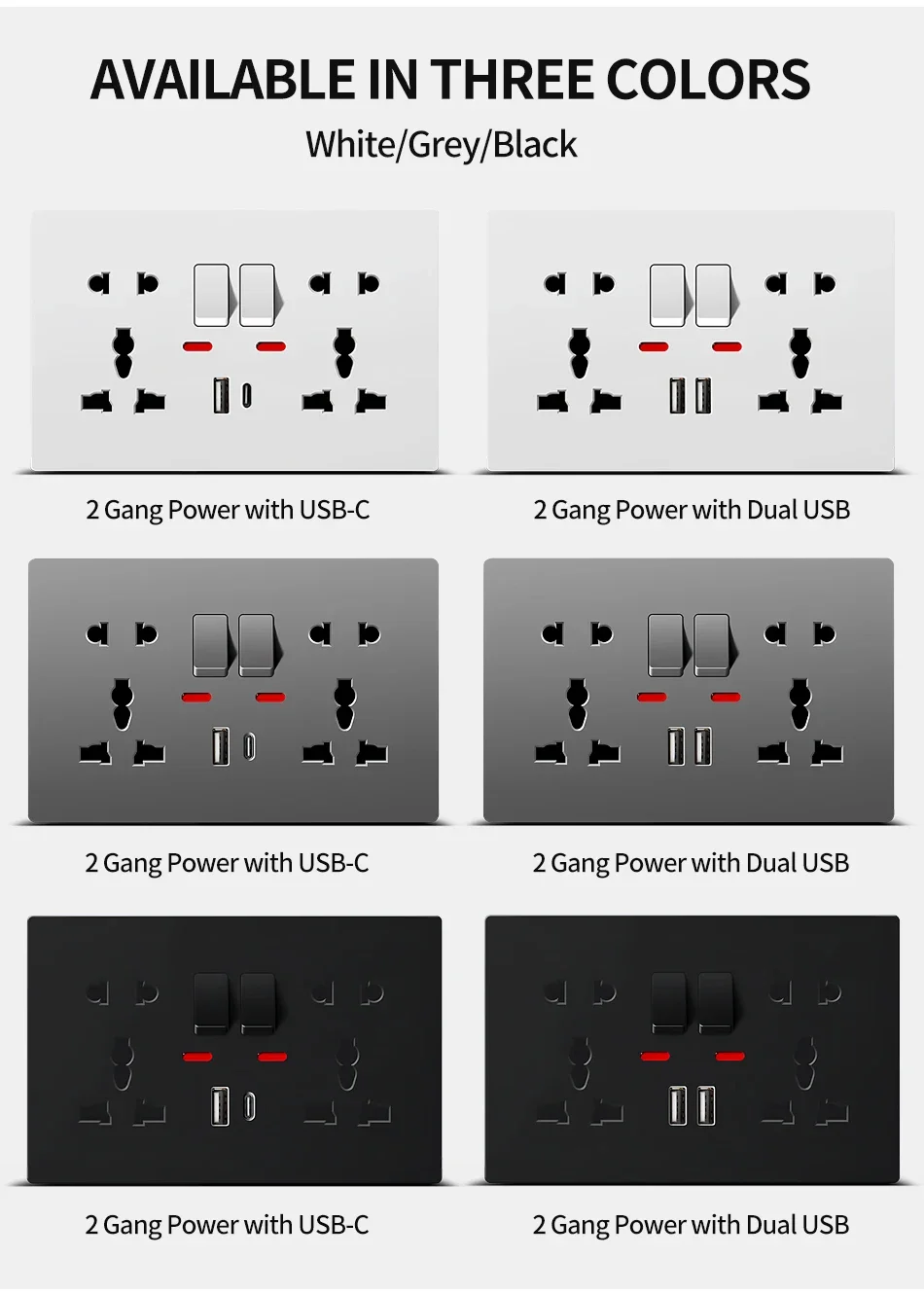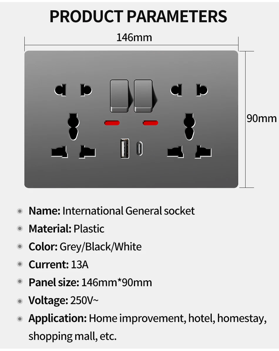 Be the first to review “Universal Wall Socket with USB-C USB Charger & Switches, 2 Gang Power Outlet With LED, Flush Mount, AC 110-250V” Cancel reply